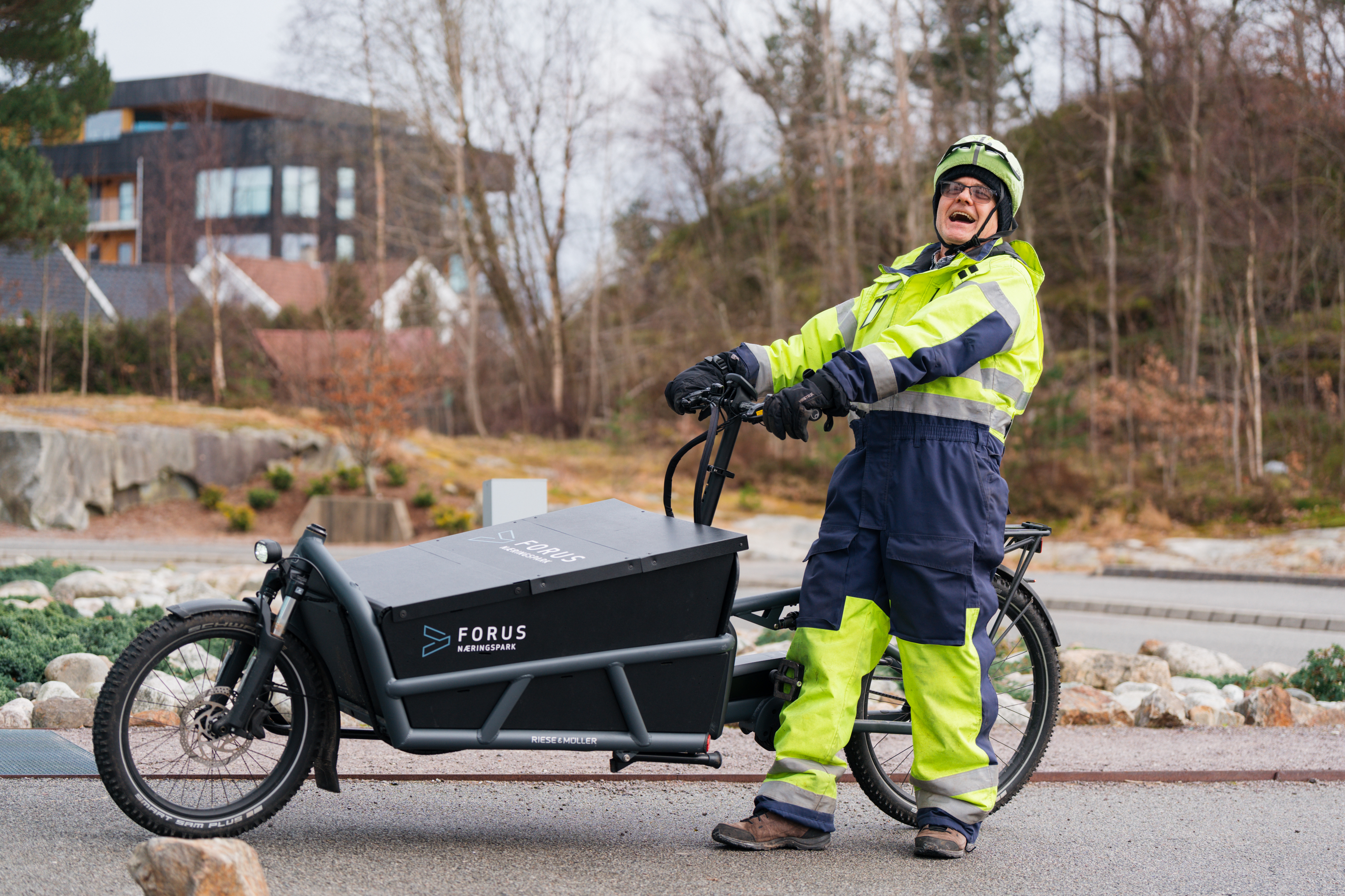 Tittelen er prosjektleder, egentlig er han vaktmester for hele Forus. Derfor har han fått kallenavnet Mr. Forus. Nå er Sigve Inge Håland stadig vekk å se på lastesykkel.